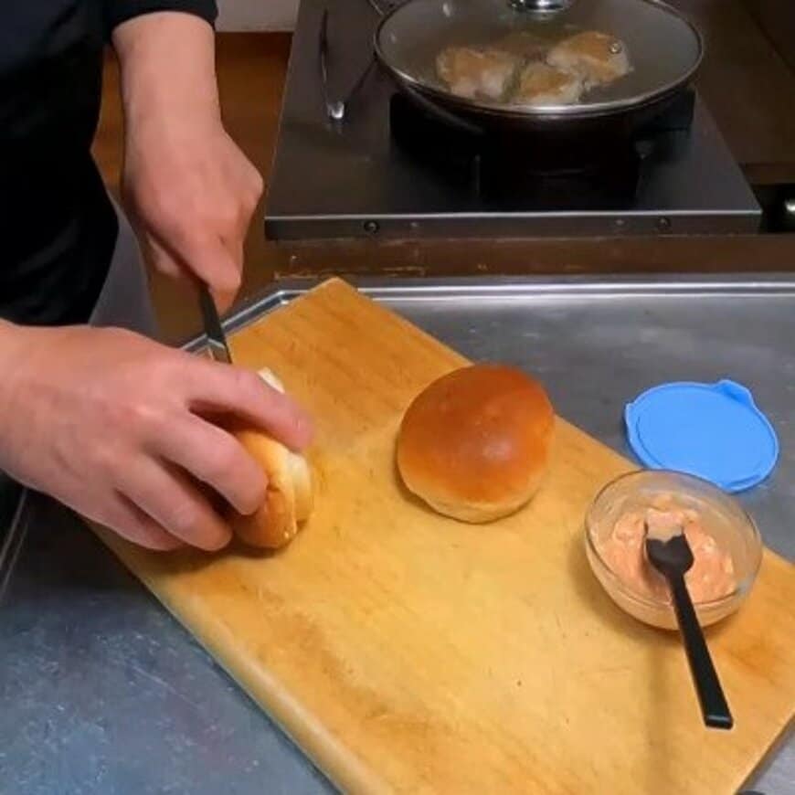 1. 【ハンバーガー弁当】ハンバーガーに挟む具を準備する