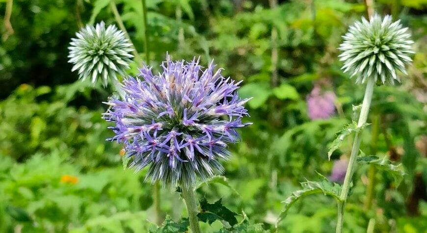 日当たりがよく、水はけの良い土に植えつければ、毎年、植えっぱなしで素敵な花を咲かせてくれるエキノプス(ルリタマアザミ)。