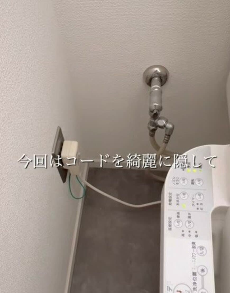 DIYテクニックを発信しているTikTokerが、丸見えになっているトイレのコードや配管を隠すために、木材とリメイクシートでおしゃれな隠し収納をDIY!スタイリッシュな仕上がりが話題になっています。