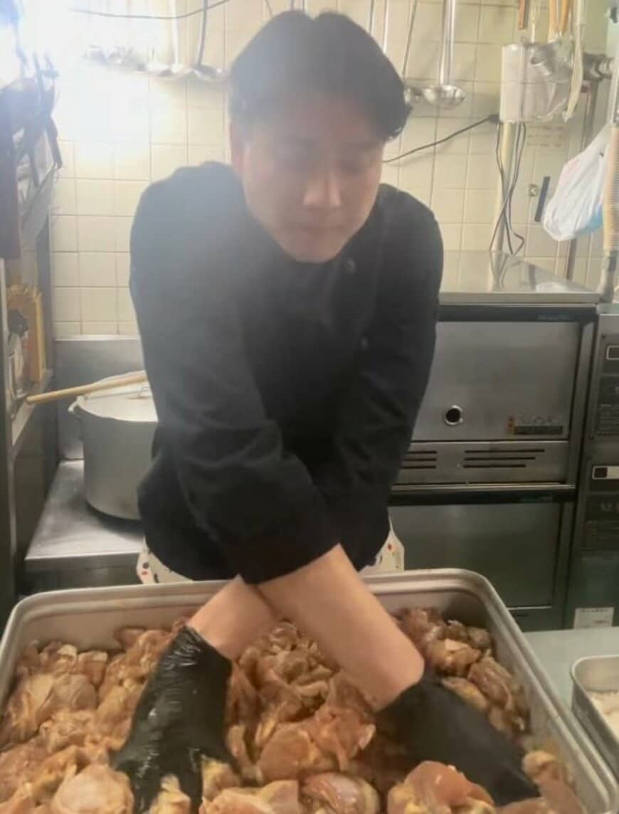 1. 【北海道の学生寮飯】唐揚げ肉の下味、腕をクロスさせて左向いて揉めば「小室哲哉」?