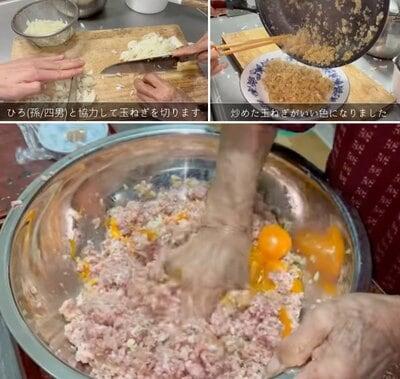 2. 【94歳おばあちゃん】孫と協力して大量のハンバーグを調理!