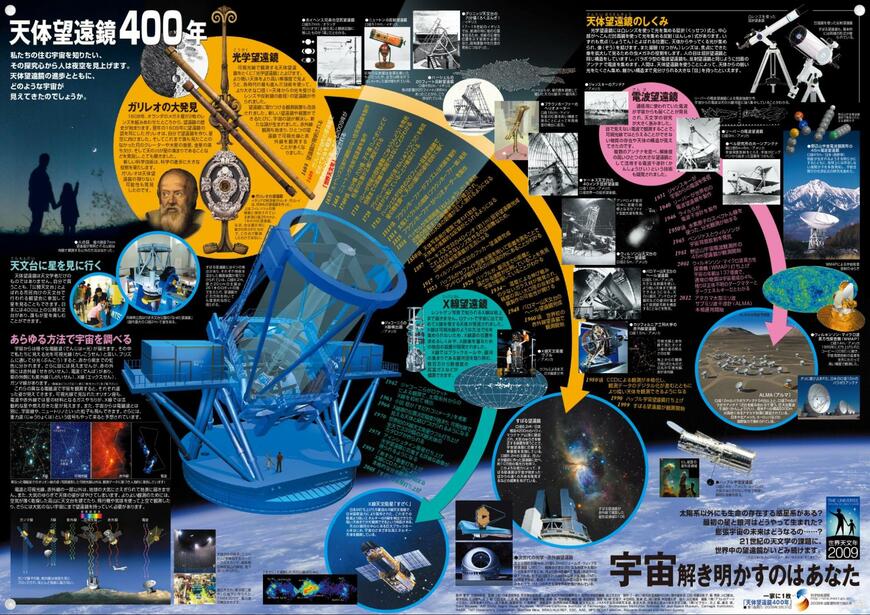 ポスターが制作された2009年は、ガリレオが初めて望遠鏡で宇宙を観測してから400周年の年で、「世界天文年」に制定されました。