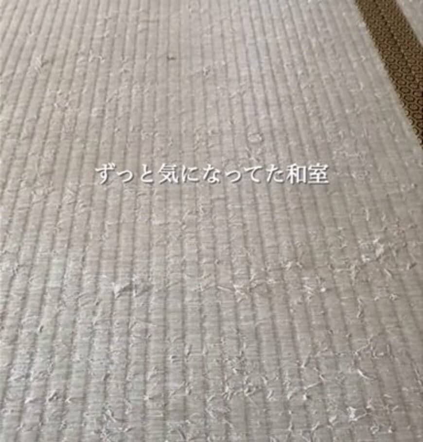 今回の動画では、ずっと気になっていたという和室の畳の上にクッションフロアを敷き、洋室へと様変わりさせます。