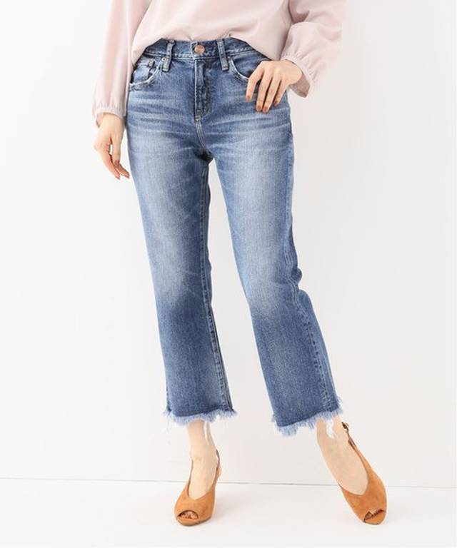 ベーシックなデニムにフリンジをあしらったこちらのボトムスは、カジュアルなデイリーコーデにもってこい。足首が見える丈感で、重くなりすぎないのが◎