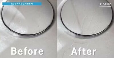 ひと吹きかけてこするだけのカンタン仕様で流し台の汚れ防止に活用できる撥水剤です。