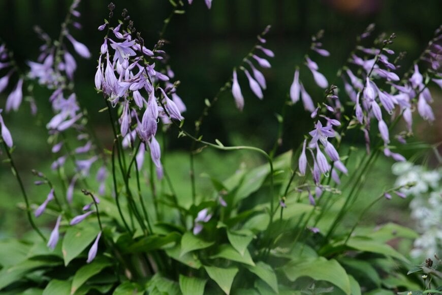 斑入りの明るい葉やシックなブルー系の葉などバリエーションが豊かで、初夏にはスッと立ち上がった茎の先に百合に似た可憐な花を咲かせます。