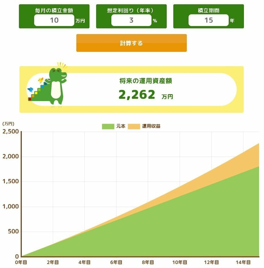 上記の数値は一定の利回りを仮定したシミュレーションであり、将来の運用成果を約束するものではありません。実際の投資には価格変動リスクがあり、元本を割り込む可能性があることを十分に理解した上で、最終的な判断はご自身の責任で行ってください。
