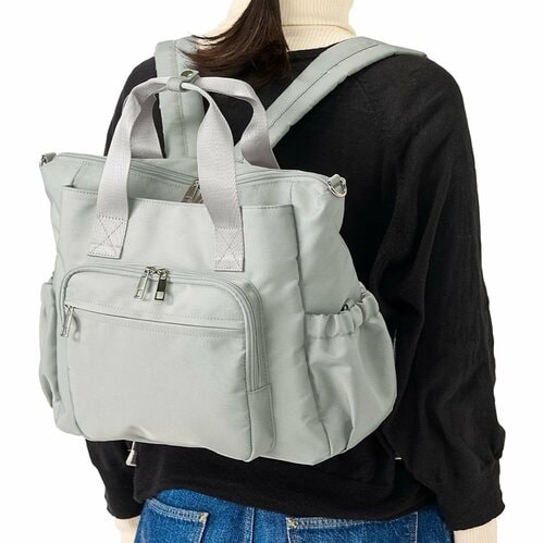 「2WAYトートリュック」は、何と言ってもポケットの多さが魅力です。タブレットなどを収納できるクッション付きポケットをはじめ、スマホや小物を入れるのに便利な内ポケットなど「あったら便利」なポケットがたっぷり付いています。