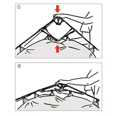 こちらのサンシェードは、「Q-TOP SYSTEM」を採用することで、約30秒で組み立てることができます。小さなお子さん連れで「屋外で手間をかけたくない…」という人にもおすすめ。