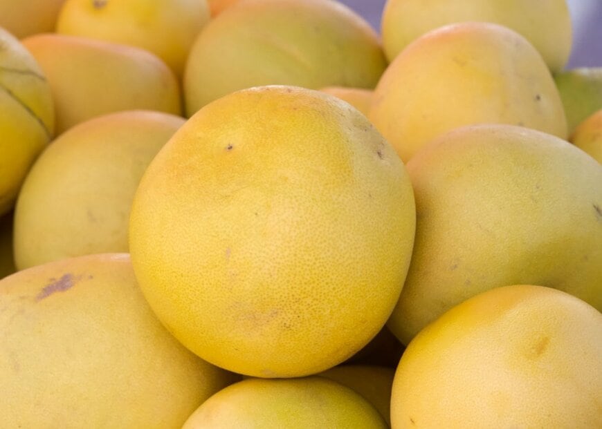 白い皿には、綺麗に皮が剥かれた立派な文旦がずらりと並んでいますが……。皮でできた「魚の頭と尻尾」がついていて、まるで「文旦のお造り」のようになっています!