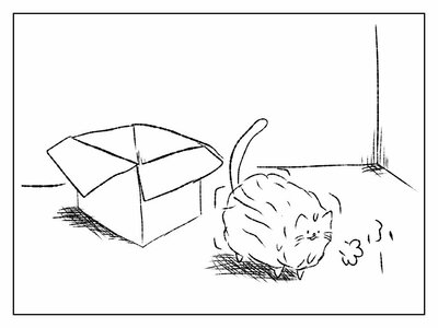 何の変哲もない段ボール。特に何かが目立つわけでもない、ただの段ボール。でも、自分が入るには、実にちょうどいいサイズの段ボール…。