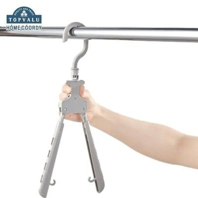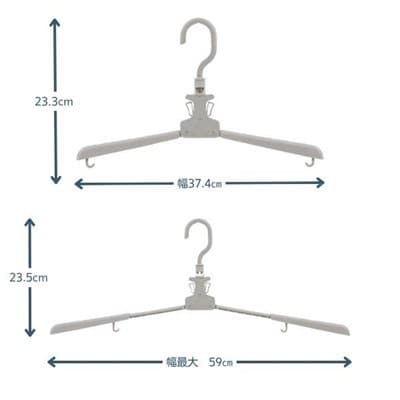ワンタッチで閉じて、カンタンに衣類を取り込めるハンガーです。首元も伸ばさず干すことができます。衣類に合わせて伸縮もできます。