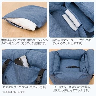 本体は手洗いができ、中のクッションもカバーを外して、クッション自体を洗うことができます。ワンちゃんが使うものだからこそ、いつでも清潔にキープしていたいもの。おでかけした後や、ニオイが気になるときなども手軽にケアしてあげてくださいね。