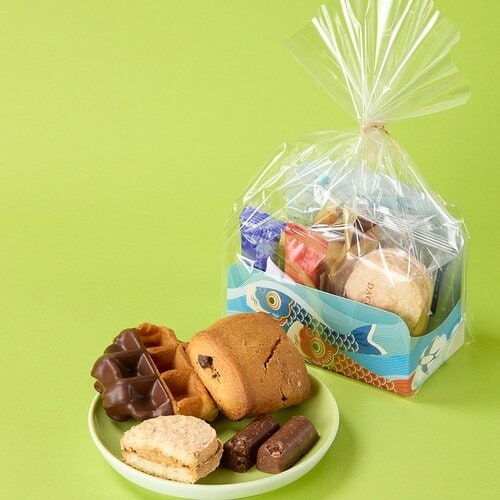 こいのぼりデザインの箱に、人気の焼き菓子3種類とチョコレートクランチが詰まったセット商品です。