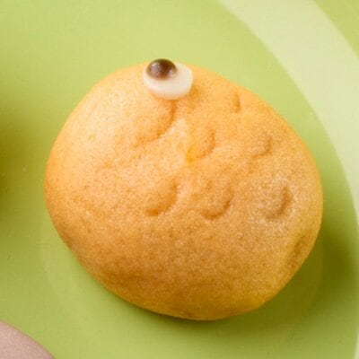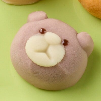 ねりきり餡で自家炊きこし餡を包み、表面にようかんの目をのせ、かわいらしい『くま』の顔をあしらった和菓子です。しっとりとしたねりきり餡とこし餡のおいしさが感じられます。