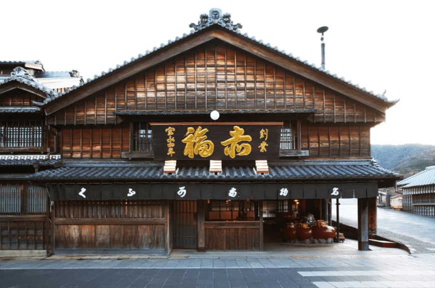 赤福の本店は伊勢神宮内宮前のおかげ横丁にあり、1877年に建てられたものです。正面に立てかけられた金看板は古くから目印として親しまれ、歴史的建造物としての価値ももっています。