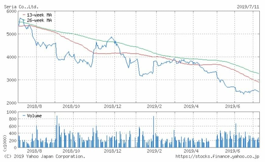 シリーズでお伝えしている「注目小売店月次実績」。今回は100円ショップ「セリア」を展開するセリア(2782)の、2019年6月の月次動向及び過去実績、また過去1年の株価動向について振り返ってみましょう。