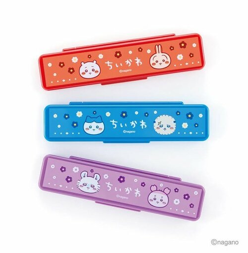 コンパクトに持ち運びやすいペンケースです。サブバッグ用にもぴったり。ちいかわ・うさぎデザインのレッド、ハチワレ・ラッコデザインのブルー、モモンガ・古本屋デザインのパープルの3種類を展開しています。