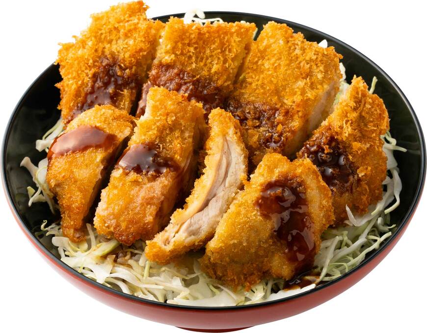 今回の全国展開に合わせて、九州・山口エリアでも初となる「チキンカツのせ焼きうどん」「チキンカツカレー」「チキンカツカレーぶっかけうどん」といった新メニューも発売。既存の「ソースチキンカツ丼」もチキンカツを増量しています。