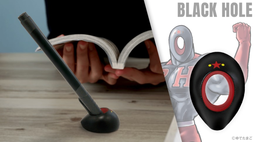 「ブラックホールペン立て」は、ステンレスに焼付塗装を施した素材を採用しており、サイズは縦40mm×横30mm×高さ20mm、重量は約60g。