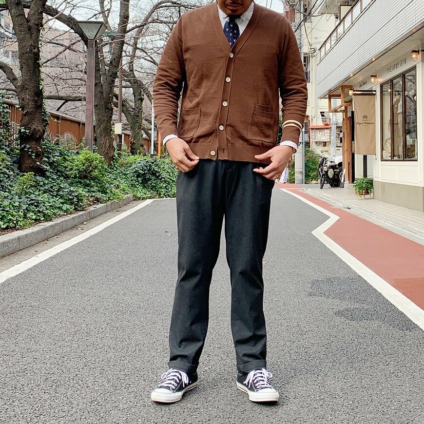 デザインはとことんシンプルで、シルエットも幅広いコーディネートに合う、細すぎず太すぎずな具合。カラバリもネイビーとブラウンという王道中の王道な展開です。