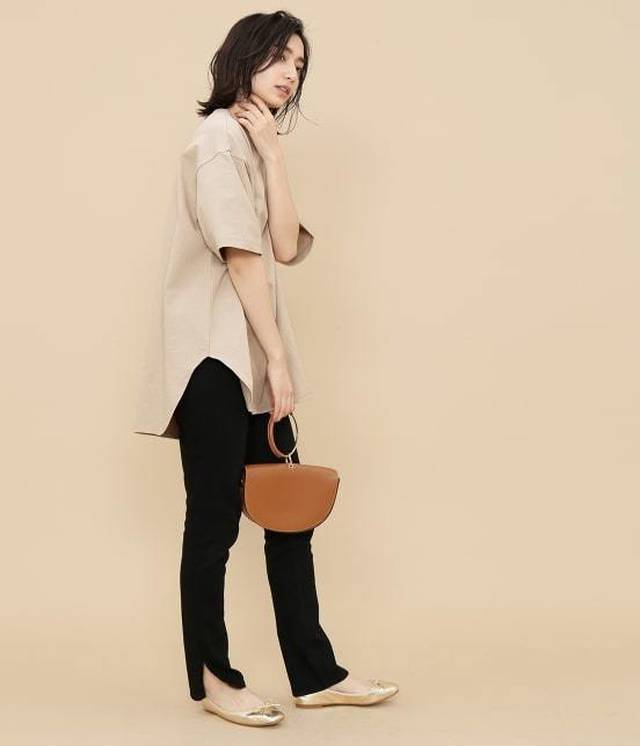 オーバーサイズのトップスには、スキニーやレギンスなど、細身のボトムが好相性。Yラインシルエットが、スタイルの良さをひき立ててくれます。