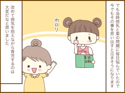 でも、その一方で、その当時を思い出すと、薬か授乳かで悩んで苦しかった気持ちが一気によみがえり、泣きそうになる自分もいるのだとか。病気とつきあいながらの育児は大変なんだということを実感しつつ、娘さんとの一日一日を大切に過ごしていこうと、あらためて強く思う、しらたまママさんなのでした。