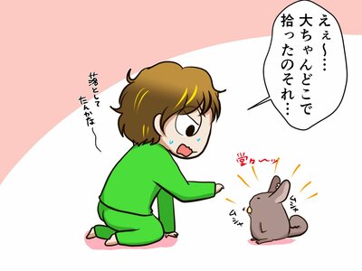「はいはい、また明日ね。」と、彼らのおねだりを流し、寝転がって読書をはじめる祭さん。こうなると、2匹もあきらめざるをえません。チンチラさんたちは「ちぇっ」といった雰囲気で、お散歩に戻っていきます。