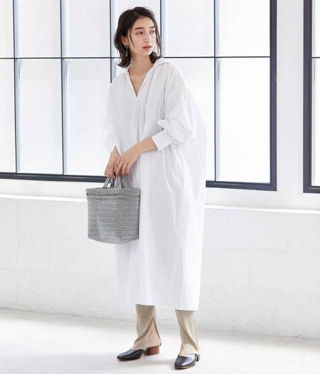包み込まれるようなシルエットが可愛い、ゆったりサイズのシャツワンピース。ハリのある生地を使用しているから、"きちんと感"もあって、使い勝手のいい一枚です。