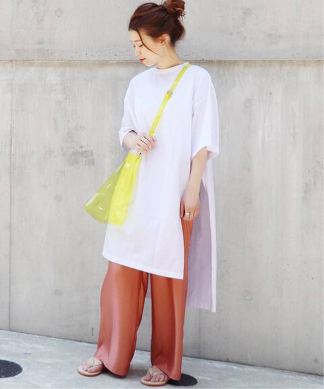 ボリュームパンツをレイヤードすれば、上下ゆるっとした、旬のスタイリングが完成! 足もとは「トングサンダル」で、とことんルーズにまとめて。