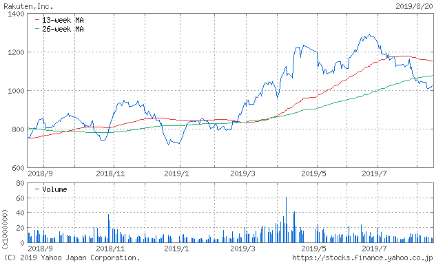 過去1年は、昨年冬には800円を割れるなどしましたが、現在は1000円台前半の株価水準となっています(2019年8月現在)。