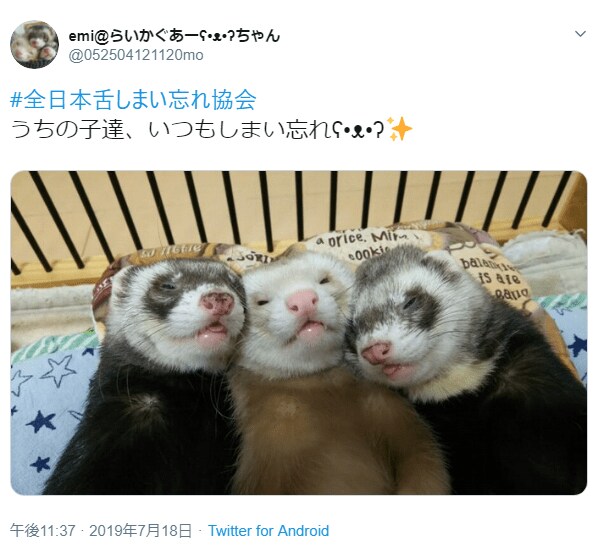 このほか、うさぎやパンダ、人間も全日本舌しまい忘れ協会の会員として名乗りを上げています。しまい忘れの世界は広かった……。