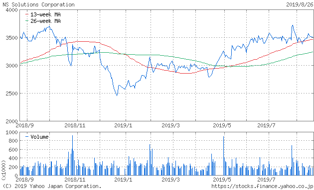 過去1年は、昨年冬には2400円程度まで下落するなどしましたが、現在は3500円台の株価水準となっています(2019年8月現在)。