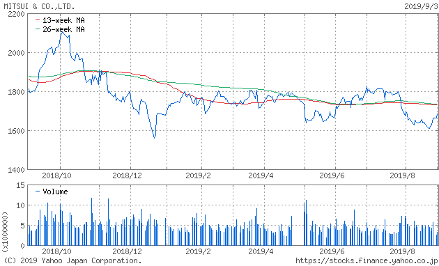 過去1年は、昨年秋には2100円を超えるなどしましたが、現在は1600円台の株価水準となっています(2019年9月現在)。