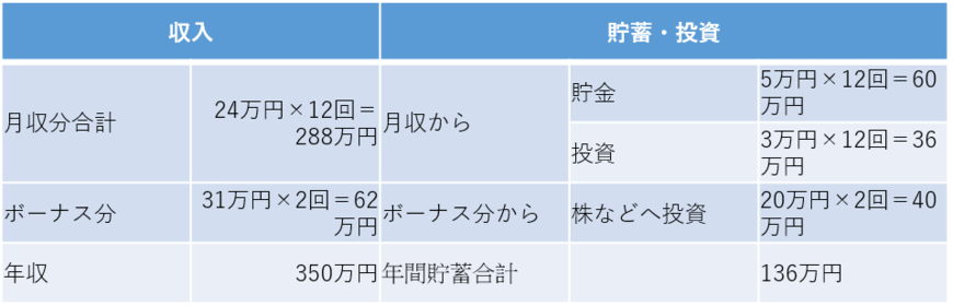 ボーナス月には毎回20万円ほどの金融商品を買って投資。1年あたり136万円を投資や貯金に回していたことになります。