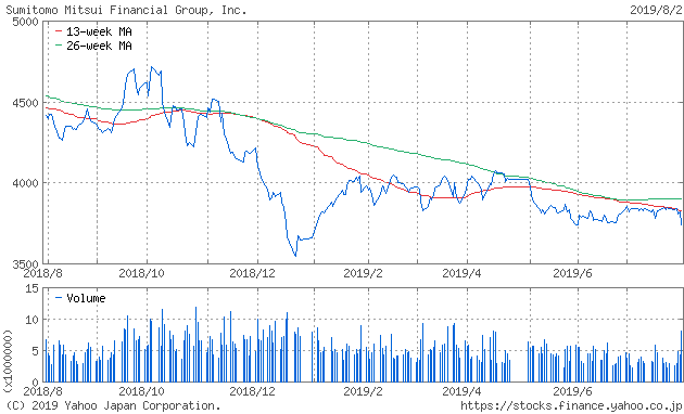過去1年は、昨年秋には4600円を超えるなどしましたが、現在は3700円を割れる株価水準となっています(2019年8月現在)。