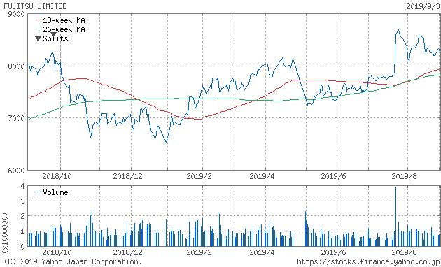 過去1年は、昨年冬には7000円を割れましたが、現在は8000円を超える株価水準となっています(2019年9月現在)。