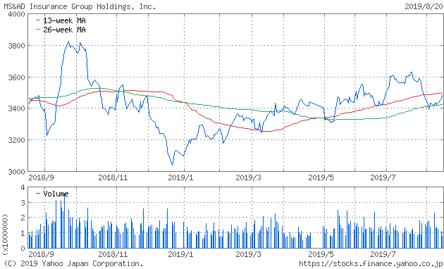 過去1年は、昨年秋には3800円を超えるなどしましたが、現在は3500円を割れる株価水準となっています(2019年8月現在)。