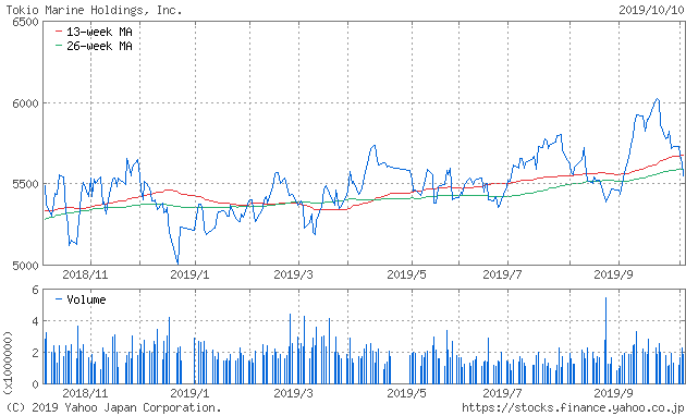 過去1年は、昨年冬には5000円を下回るなどしましたが、現在は5500円程度の株価水準となっています(2019年10月現在)。