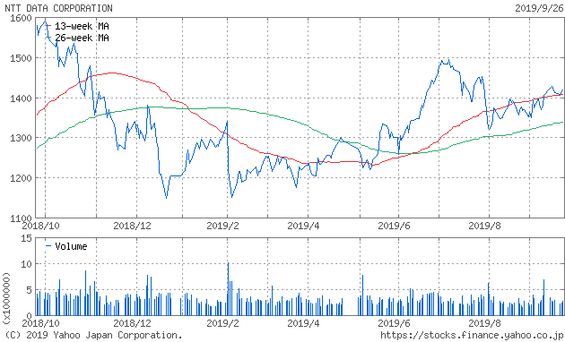 過去1年は、昨年秋には1600円を超えるなどしましたが、現在は1400円台の株価水準となっています(2019年9月現在)。