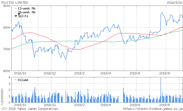 過去1年は、昨年秋には6300円台に下がるなどしましたが、現在は8500円前後の株価水準となっています(2019年9月現在)。