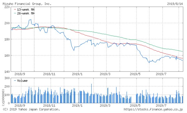 過去1年は、昨年秋には200円を超えるなどしましたが、現在は160円を割れる株価水準となっています(2019年8月現在)。