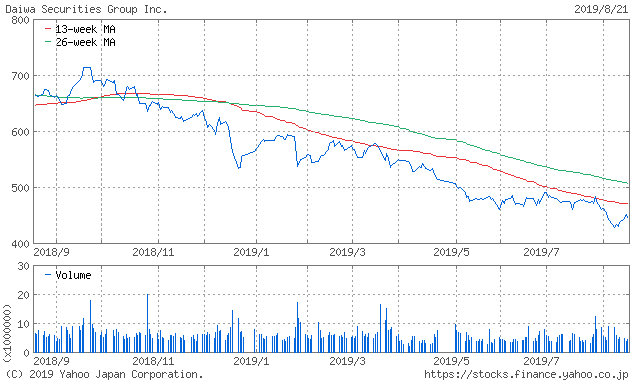 過去1年は、昨年秋には700円を超えるなどしましたが、現在は400円台の株価水準となっています(2019年8月現在)。