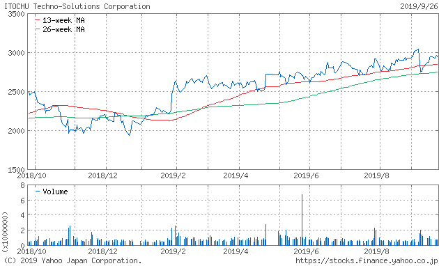 過去1年は、昨年秋には1900円を下回るなどしましたが、現在は2900円前後の株価水準となっています(2019年9月現在)。
