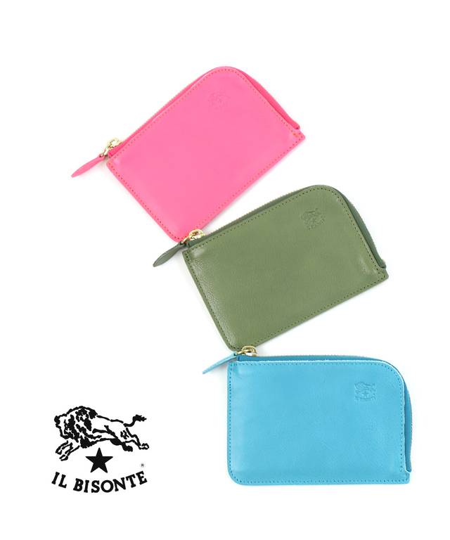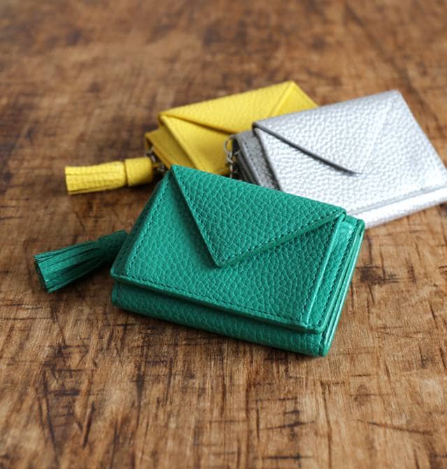 名刺サイズのミニウォレット。シボ感のあるレザーで、鮮やかなカラーが高級感のある仕上がり! 小銭入れが表面に独立していて使いやすく、小さくても使い勝手の良いデザインです。