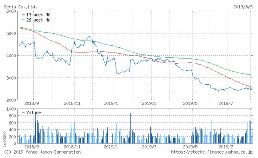 シリーズでお伝えしている「注目小売店月次実績」。今回は100円ショップ「セリア」を展開するセリア(2782)の、2019年7月の月次動向及び過去実績、また過去1年の株価動向について振り返ってみましょう。