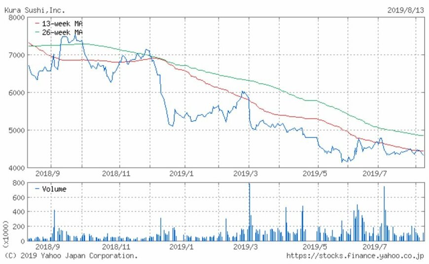 シリーズでお伝えしている「注目小売店月次実績」。今回は回転寿司チェーン店「くら寿司」を運営するくら寿司(2695)の、2019年7月の月次動向及び過去実績、また過去1年の株価動向について振り返ってみましょう。