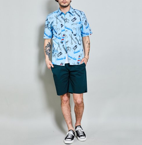 形はあえてワークシャツのパターンを採用。カジュアルにTシャツやタンクトップの上に羽織りやすい一枚です。いつものTシャツスタイルに気軽にプラスできるのはありがたいところ。ストリート風味で柄シャツを着こなしたい方はぜひお見逃しなく。