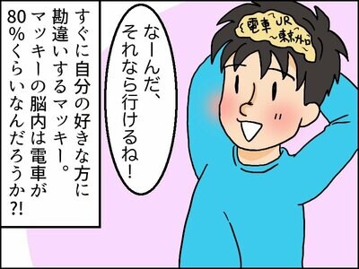 「脳内の80%が電車のことなんじゃないかしら?」とすら思うほど、いろいろなことを、すぐに電車に関係したことに勘違いしてしまうまっきー。それでも、その興味が将来良い方向に動いてくれればと、きょうも我が子の成長を見守るなおにゃむさんなのでした。
