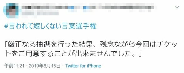 「厳正なる抽選を行った結果、残念ながら今回はチケットをご用意することが出来ませんでした。」